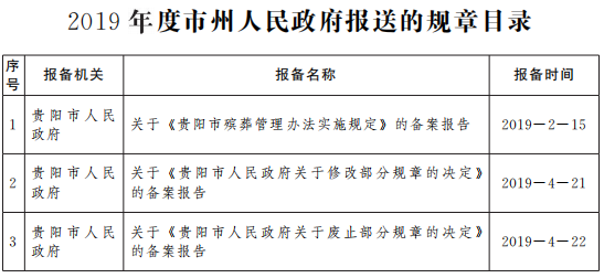 贵州省人民代表大会常务委员会法制工作委员会关于2019年规范性文件备案审查工作情况的报告