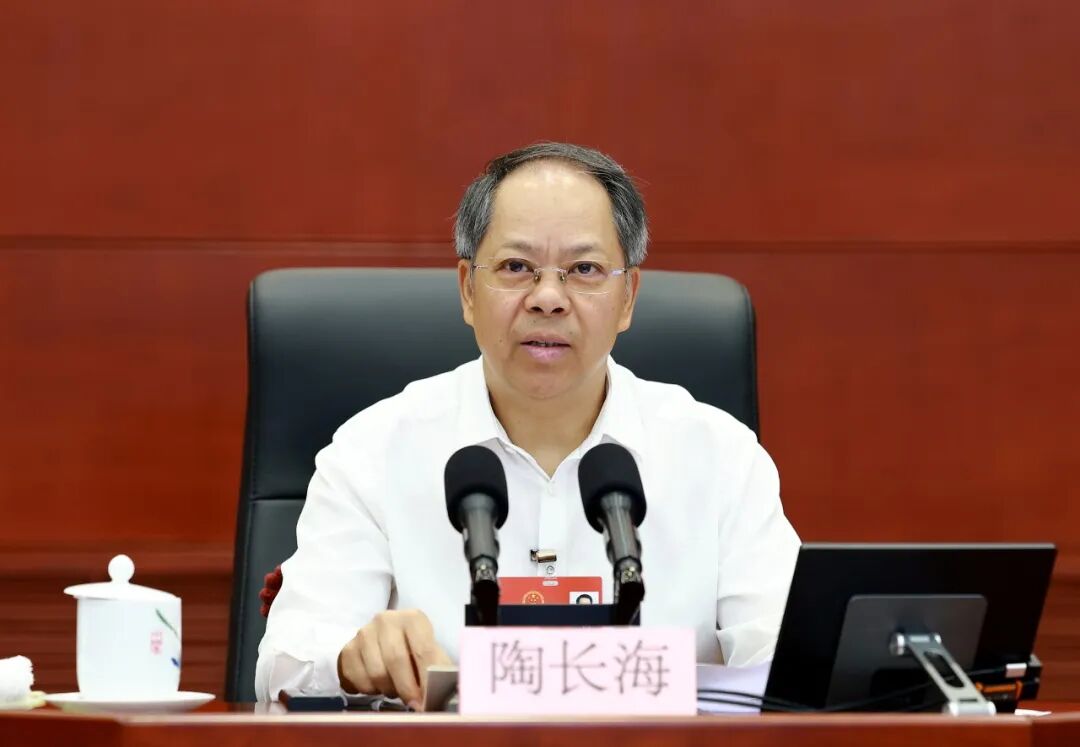省人大常委会副主任陶长海主持会议并讲话,副主任郭瑞民、桑维亮、王忠、杨永英、李豫贵,秘书长李三旗出席会议。