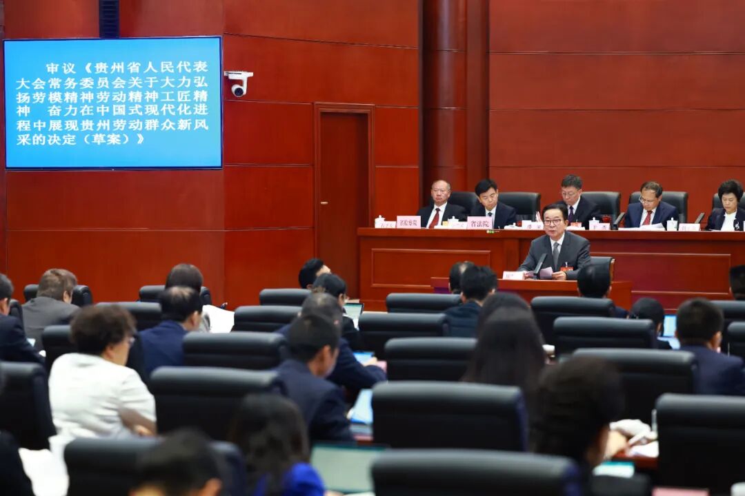 5月27日,省十四届人大常委会第十七次会议在贵阳举行第一次全体会议,会议听取关于《贵州省人民代表大会常务委员会关于大力弘扬劳模精神劳动精神工匠精神奋力在中国式现代化进程中展现贵州劳动群众新风采的决定(草案)》(以下简称《决定(草案)》)的说明。