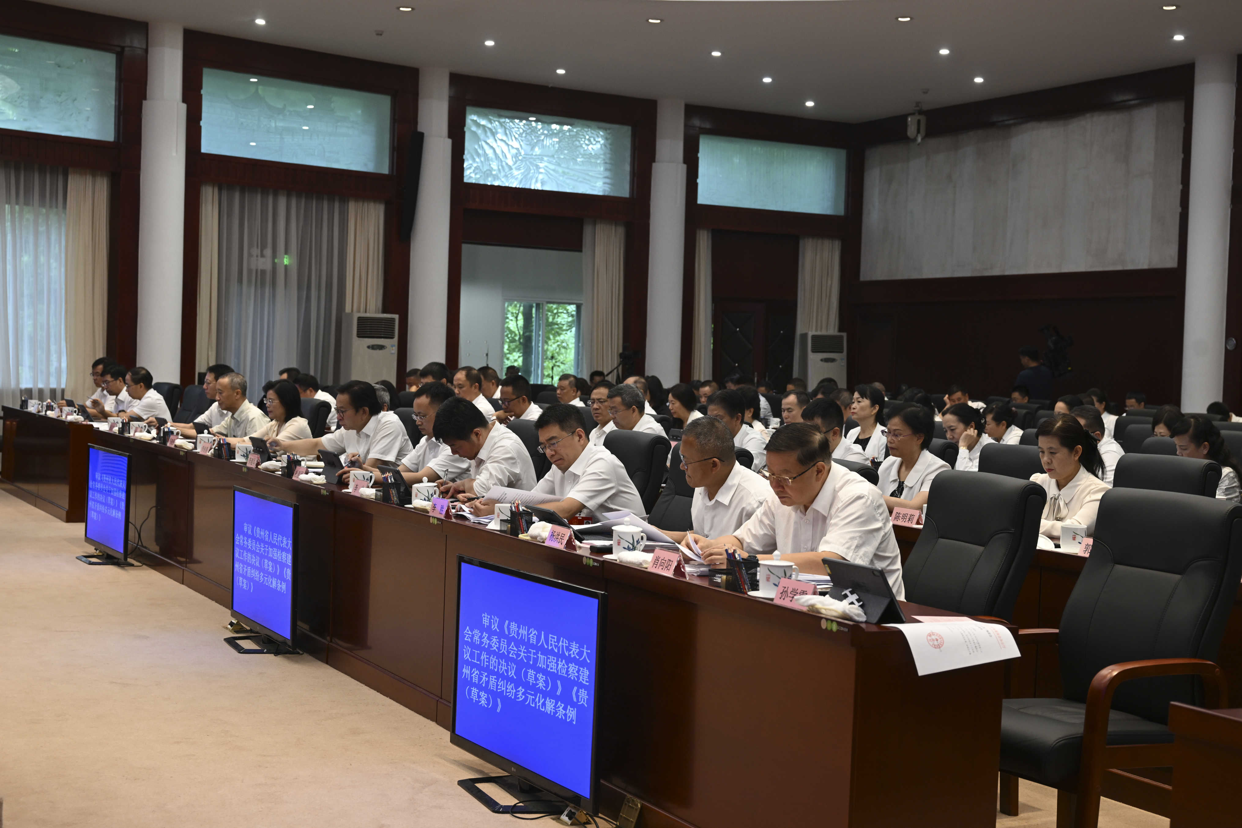 会议听取了省政府关于上半年经济工作情况和下半年经济工作安排的报告,省检察院关于检察建议工作情况的报告,省人大监察和司法委员会关于《贵州省人民代表大会常务委员会关于加强检察建议工作的决议(草案)》《贵州省矛盾纠纷多元化解条例(草案)》的说明,省人大法制委员会关于《贵阳市南明河保护规定》《遵义市制止餐饮浪费行为办法》《毕节市餐厨垃圾管理条例》《毕节市院前医疗急救条例》审议结果的报告,省人大民族宗教委员会关于《威宁彝族回族苗族自治县人民代表大会关于修改〈威宁彝族回族苗族自治县畜牧业发展条例〉的决定》等审议结果的报告。(人大论坛全媒体记者  文媛