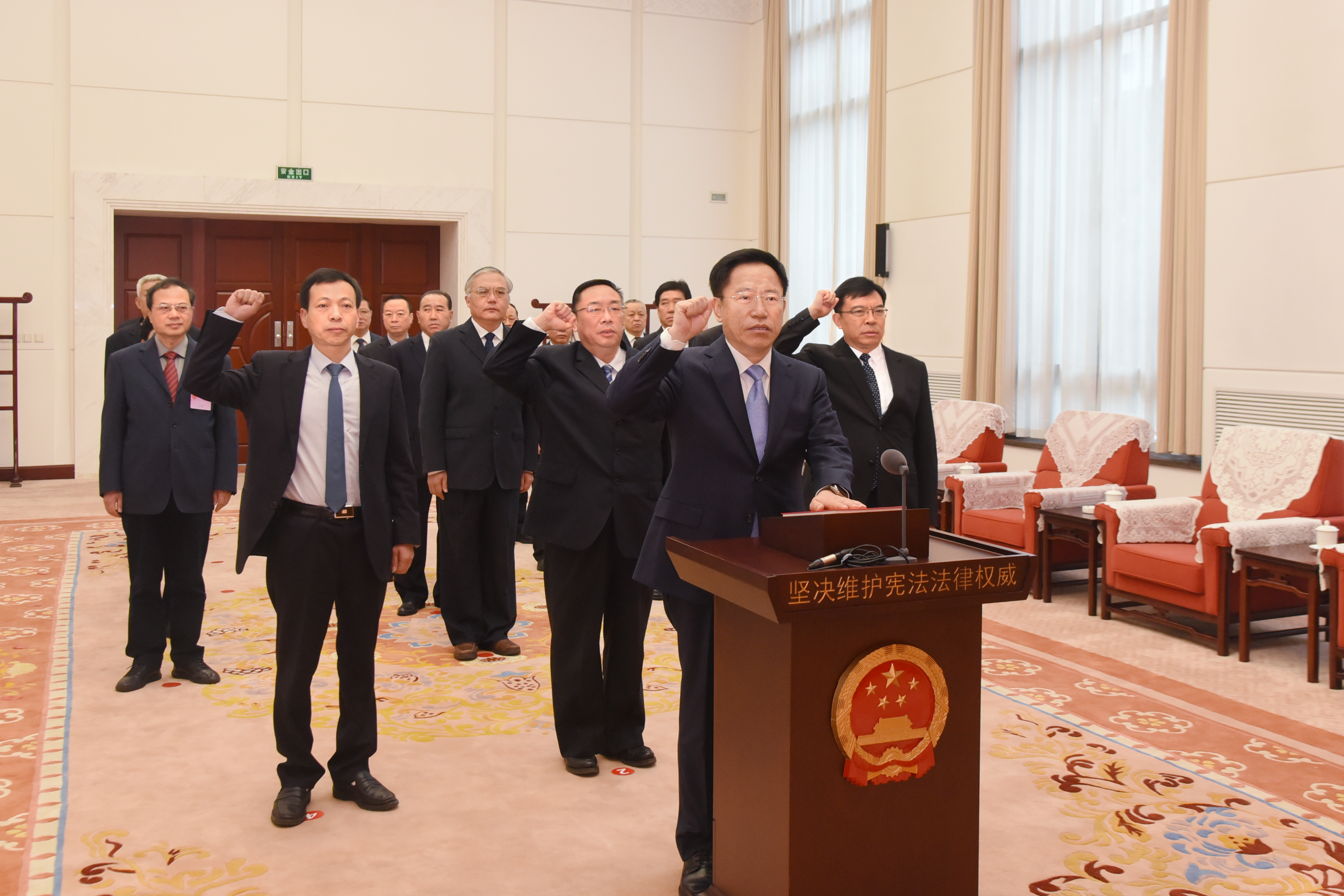 会后,举行了宪法宣誓仪式,新任命人员向宪法进行了宣誓。(文图:人大论坛融媒体记者  伊航   视频:人大论坛融媒体记者  杨猛  陈兵)