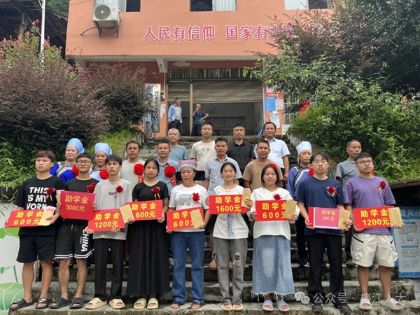 (图为:韦仕江代表给2025年考取高校学生颁发升学奖励)