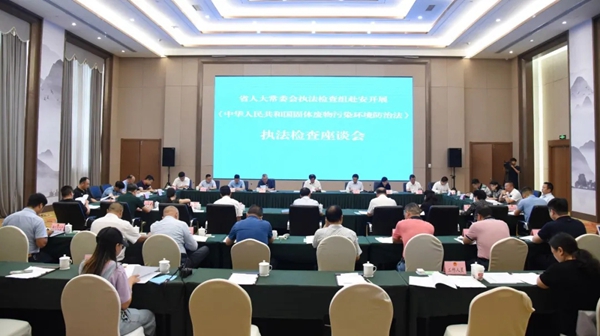 近日,省人大常委会副主任李飞跃率执法检查组赴安顺市开展《中华人民共和国固体废物污染环境防治法》(以下简称固废法)执法检查,实地查看了解生活垃圾填埋、工业垃圾处理、生活垃圾焚烧发电再利用等处理模式的政策支持、优势劣势、技术工艺、运营管理等情况,并听取相关情况汇报。