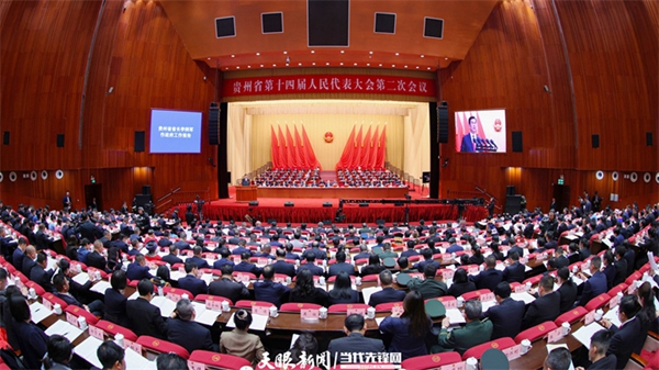 2024年1月24日上午,贵州省第十四届人民代表大会第二次会议在贵阳隆重开幕。图为会议现场