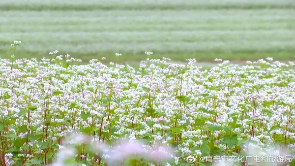 隆安的更望湖枯水季开满荞麦花。via:南宁广播电视台