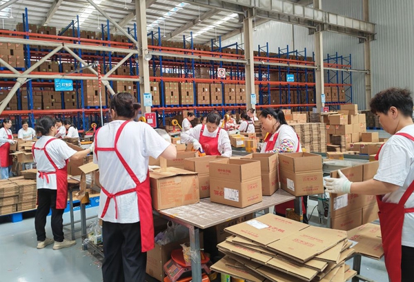 “我是桃子姐,这次带来了我们四川的特色产品……”在位于荣县的荣丰科技发展有限责任公司里,网红“蜀中桃子姐”等头部网红忙着直播带货,工人们忙着打包等待发货的商品,货架上摆满了川味调料、冷吃兔、钵钵鸡等特色小吃。