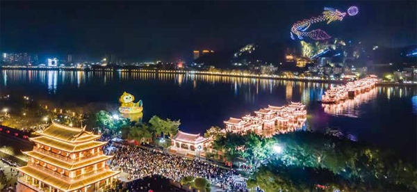 在潮州古城举办灯光秀和无人机表演,推动文旅产业发展。