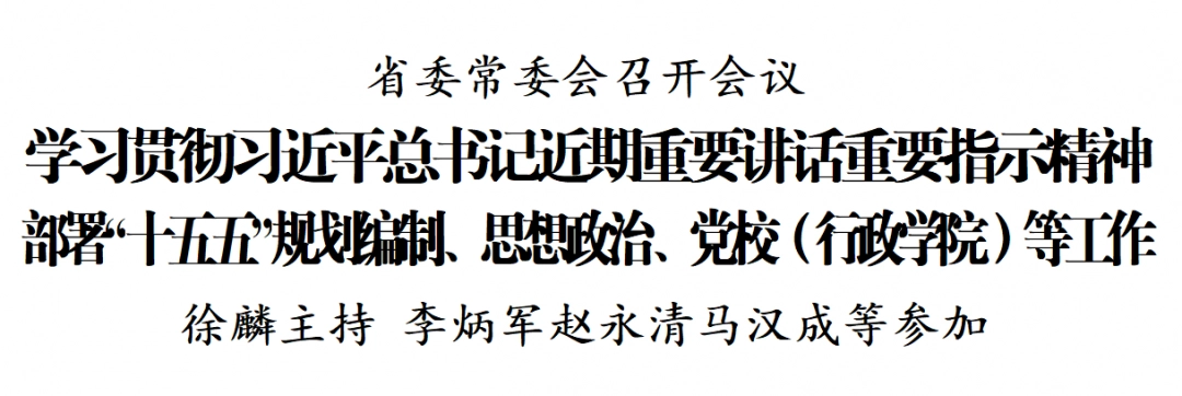 10月11日,省委常委会召开会议,学习贯彻9月29日中央政治局会议精神和习近平总书记近期重要讲话重要指示精神,学习贯彻《中国共产党思想政治工作条例》《中国共产党党校(行政学院)工作条例》,部署“十五五”规划编制等工作。