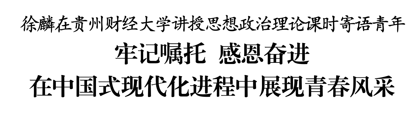 12月18日,省委书记徐麟到贵州财经大学讲授思想政治理论课,深入学习贯彻党的二十届四中全会精神和习近平总书记考察贵州重要讲话精神,贯彻落实省委十三届八次全会部署,围绕“十四五”时期的非凡历程、“十五五”时期的宏伟蓝图、青年学生肩负的光荣使命进行交流,寄语全省广大青年牢记嘱托、感恩奋进,在中国式现代化进程中展现青春风采。
