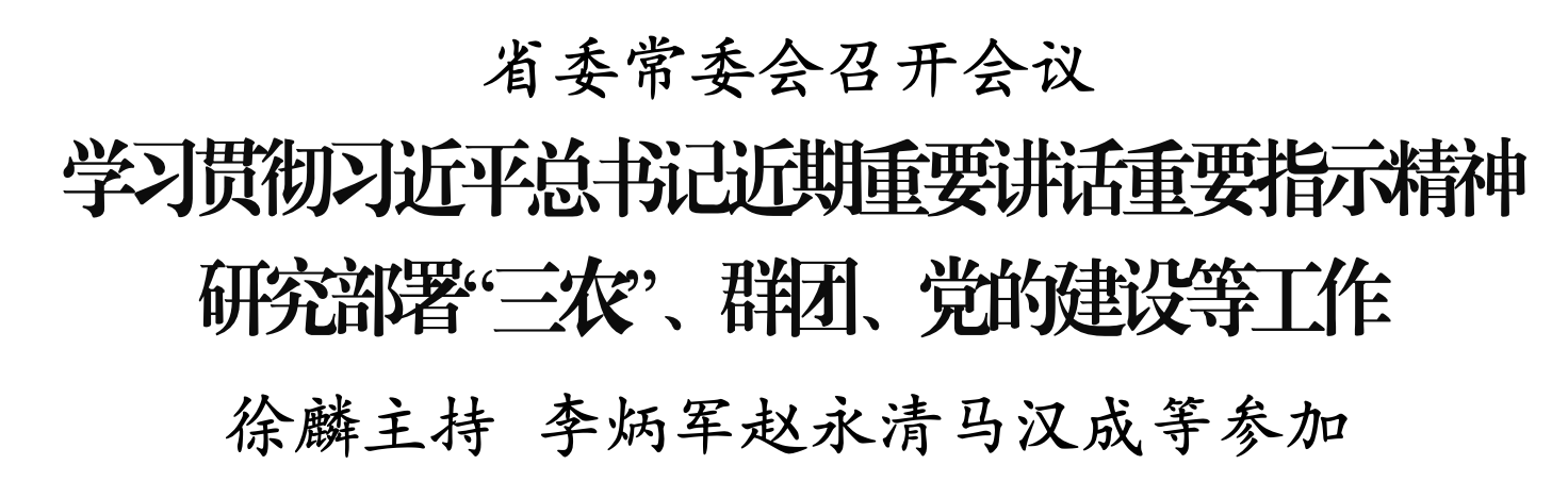 1月9日,省委常委会召开会议,学习贯彻中央政治局民主生活会精神和习近平总书记近期重要讲话重要指示精神,学习贯彻中央农村工作会议精神,听取2025年全省工会、共青团和少先队、妇联工作情况汇报,听取2025年省直机关工委工作情况和全省国企、高校党建工作情况汇报,研究部署有关工作。