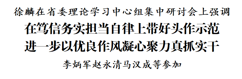 1月9日,省委理论学习中心组集中研讨会在贵阳举行。省委书记徐麟主持会议并讲话。他强调,要深入学习贯彻习近平总书记关于党的建设的重要思想、关于党的自我革命的重要思想,认真学习贯彻习近平总书记在中央政治局民主生活会上的重要讲话精神,坚定拥护“两个确立”、坚决做到“两个维护”,在笃信、务实、担当、自律上带好头作示范,进一步以优良作风凝心聚力、真抓实干,更好在中国式现代化进程中展现贵州新风采。