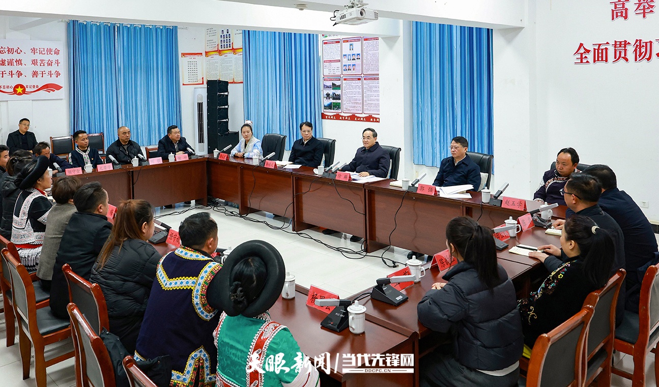 乌蒙深处年味正浓。习近平总书记2021年2月3日亲临黔西市新仁乡化屋村考察,亲切看望慰问各族干部群众,充分体现人民领袖爱人民、人民领袖人民爱。在领袖关心关怀下,化屋村“十四五”时期展现新变化新面貌新气象。徐麟来到化屋村,察看村容村貌,调研苗绣生产车间,走进赵玉学等村民家中交谈,勉励乡亲们牢记嘱托、感恩奋进,在“十五五”时期让产业更兴旺、环境更美丽、生活更红火,叮嘱守正创新保护传承民族传统文化,扎实推进移风易俗、培育文明新风。在村委会,化屋干部群众深情重温习近平总书记考察时的幸福时刻,徐麟深情讲述总书记考察肇兴侗寨时的感人场景,共同体悟总书记谆谆教诲。徐麟说,五年来极不平凡的历程再次充分证明,什么时候把习近平总书记重要讲话重要指示精神学习得越好、理解得越深、贯彻得越有力,发展成效就越显著。迈步新征程,全省上下要坚定沿着习近平总书记指引的方向奋勇前进,坚持以高质量发展统揽全局,奋力在中国式现代化进程中展现贵州新风采。