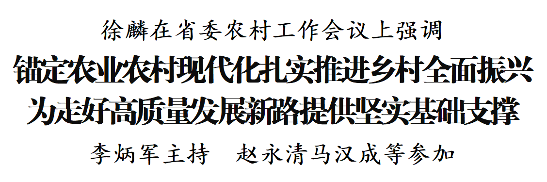 徐麟肯定过去一年全省“三农”工作成绩。他指出,新征程上要牢记习近平总书记厚望重托,全面把握“三农”工作重大意义、重要目标、重点任务,努力把农业建成现代化大产业、使农村基本具备现代生活条件、让农民生活更加富裕美好。