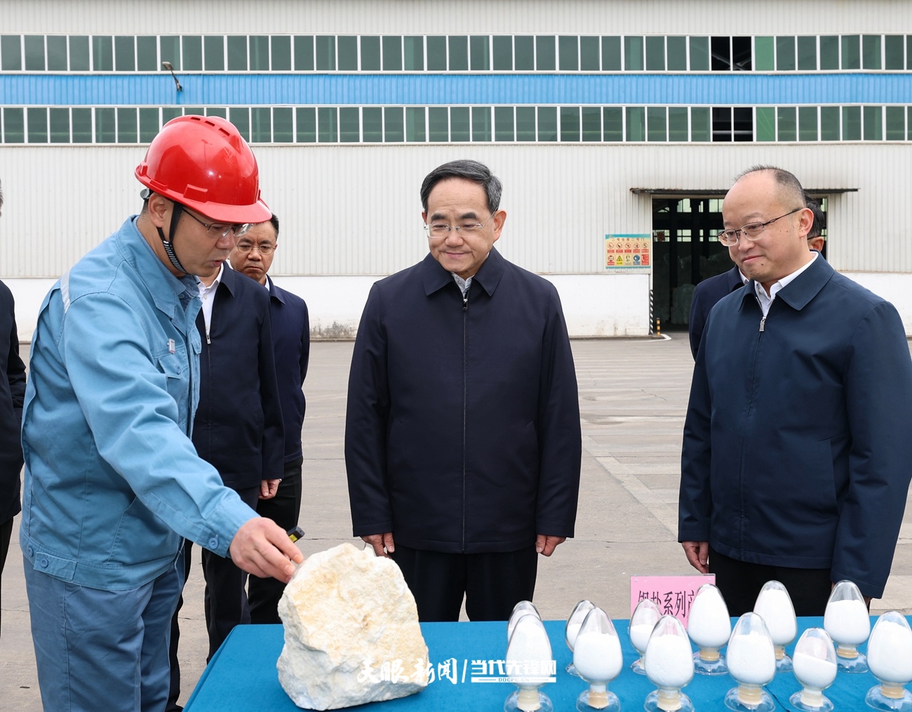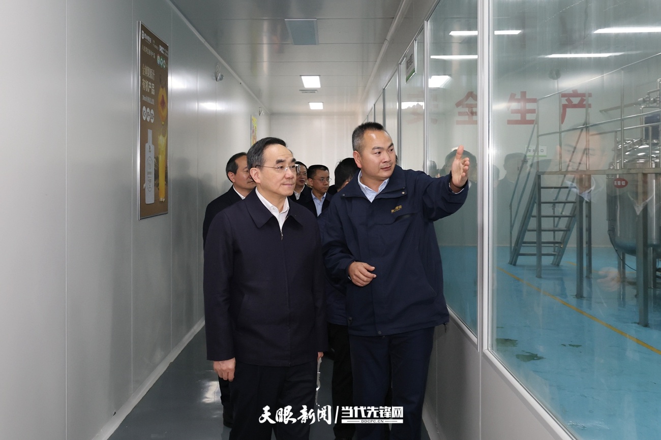 图为徐麟在镇宁自治县贵州红星发展公司考察,了解公司生产经营、产品研发、科技创新等情况。