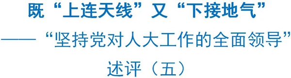 作为一项重要的政治原则,坚持党的领导,必须落实到代表工作的全过程,体现在代表履职的各环节。密切代表同人民群众的联系,推动党中央决策部署和宪法法律落实下去,把人民群众的意见建议和愿望要求反映上来,做到“上连天线”、“下接地气”,这是实现党对代表工作领导的一种重要方式。