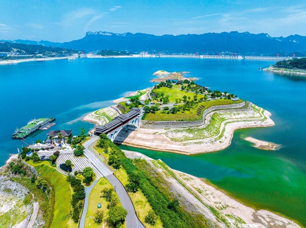 >>三峡大坝坝前水位下降后的消落带清晰可见 新华社发 王罡/摄