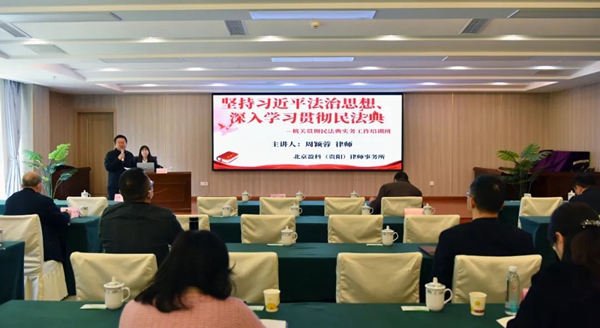 3月13日,省人大常委会机关“坚持习近平法治思想、深入学习贯彻民法典”实务培训班在贵阳开班。省人大常委会法工委副主任、机关法律顾问办公室负责人李勇主持开班仪式。机关外聘法律顾问北京盈科(贵阳)律师事务所律师周颖蓉作主讲。