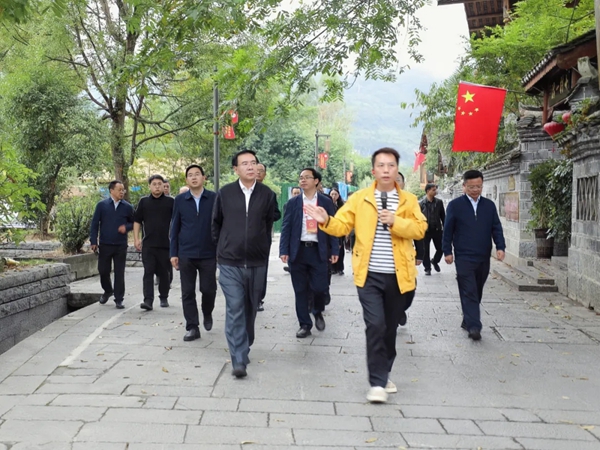 视察组在石阡县仙人街景区视察了解乡村旅游发展情况。