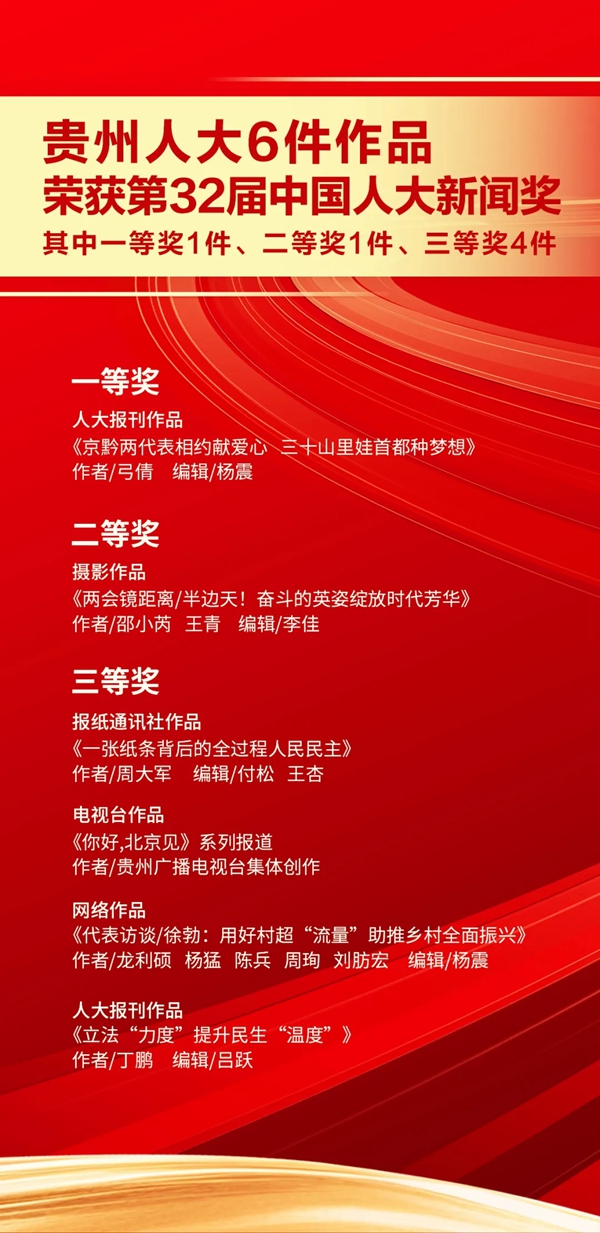 第32届中国人大新闻奖评选结果揭晓!贵州获一等奖1件二等奖1件三等奖4件