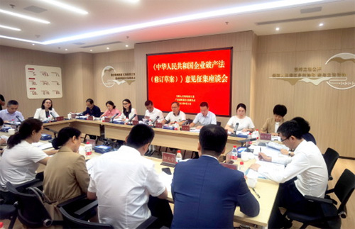 图为广东省深圳市福田区人大常委会基层立法联系点举行企业破产法修订草案意见征集座谈会。