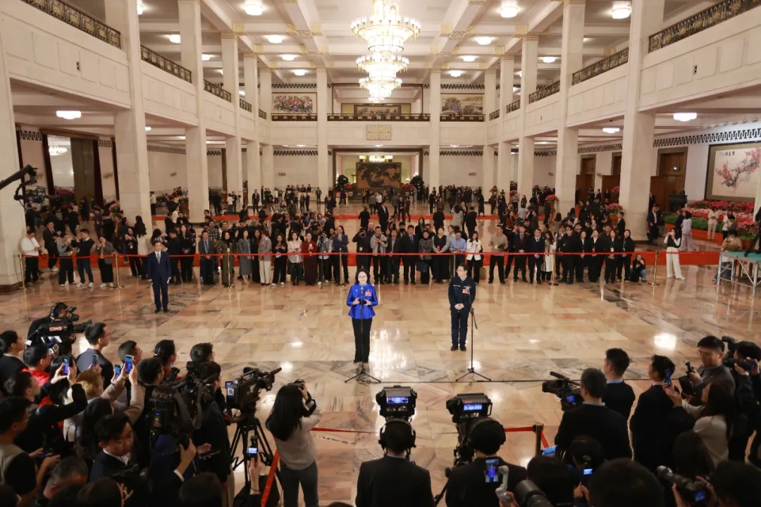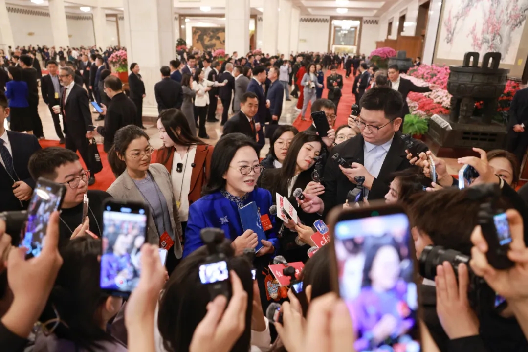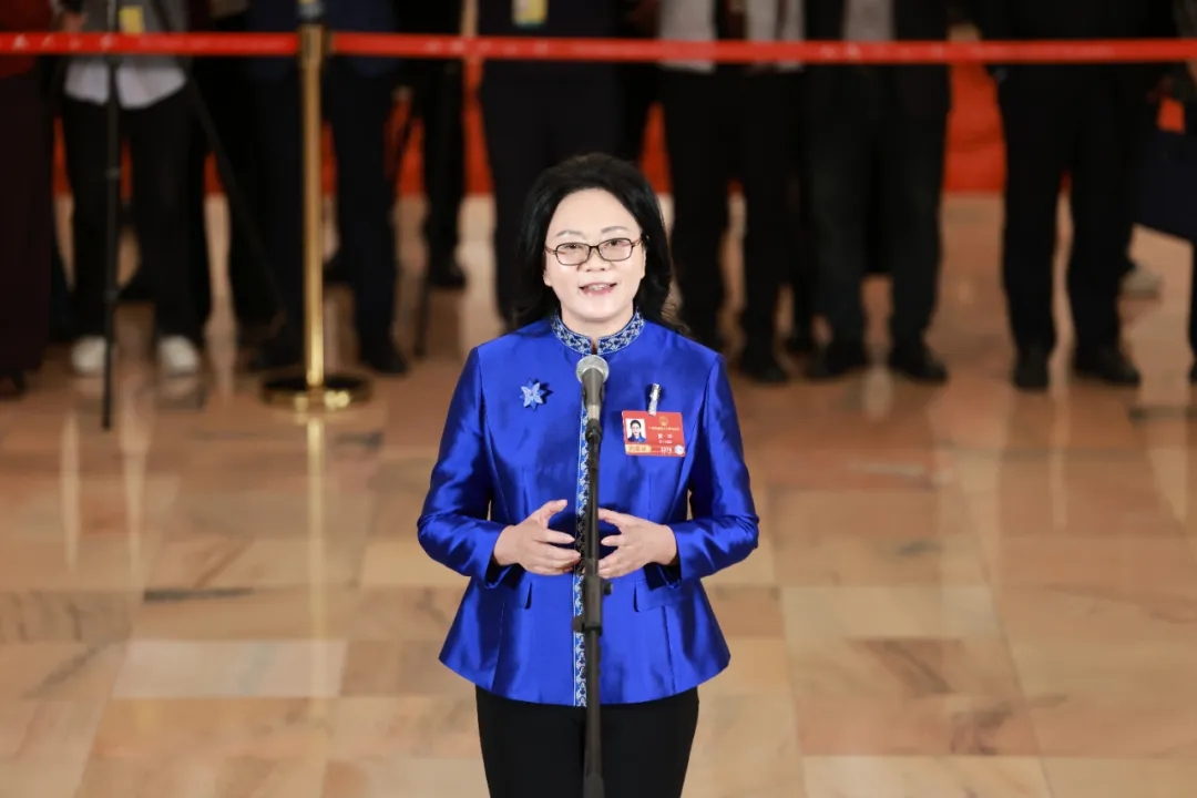 3月12日下午,十四届全国人大四次会议第三场“代表通道”集体采访活动在北京人民大会堂举行。全国人大代表、依文集团董事长夏华走上通道,向中外记者讲述了她带领团队把贵州绣娘的手艺带出大山,让传统手工艺实现产业化的故事。