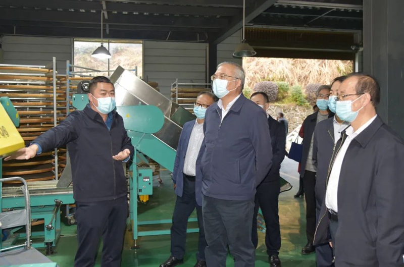 在织金县检查调研期间,何力走进织金县桂果镇绮陌村,仔细观看了金荪公司陈列室、菌种中心、智能菇棚等,详细了解企业生产经营、菌种制种、企业在乡村振兴中发挥作用和传染病防治工作情况,勉励企业要按照产业现代化标准布局,理清发展思路、明确工作重点,靠品牌和质量提升产品竞争力,要加强同高校、科研机构的技术合作,加快竹荪产品研发,奋力推进织金竹荪产业发展;地方政府要加大职业技能培训力度,形成良好的乡村人才培育机制,充实壮大乡村振兴人才队伍,要统筹疫情防控和经济社会发展,防住疫情、稳住经济、安全发展,科学稳妥推动复工复产。来到织金城南乌蒙利民生态茶场种植基地,连绵起伏的山峦与垄垄苍翠碧绿的茶园相互映衬,成为“绿水青山就是金山银山”的真实写照。何力仔细询问了茶叶种植加工、市场销售、利益联结、农民务工收入等情况,勉励企业要开拓新视野,找准发展定位,培育自身优势,不断拉长产业链,实现经济效益与生态效益相统一;要把握好茶产业发展优势,做好茶文化、茶产业、茶科技大文章,奋力推动毕节市茶产业高质量发展。执法检查组还走进猫场镇龙潭村乡村振兴示范点和猫场镇皂角精加工车间,详细了解产业发展规划、文化资源开发、基础配套设施、村寨建设规划及传染病防治等工作开展情况,强调要以党的二十大精神为引领,扎实推动乡村产业、人才、文化、生态、组织振兴,认真贯彻执行传染病防治法及配套法规,不断提升乡村传染病防治综合能力和水平。来到三甲街道南瓜加工厂,执法检查组实地察看南瓜生产加工,听取织金农业现代化推进情况汇报,强调要大力发展特色优势产业,提高产品附加值,完善利益联结机制,让更多老百姓在产业发展中致富,实现企业经济效益和社会效益双赢。