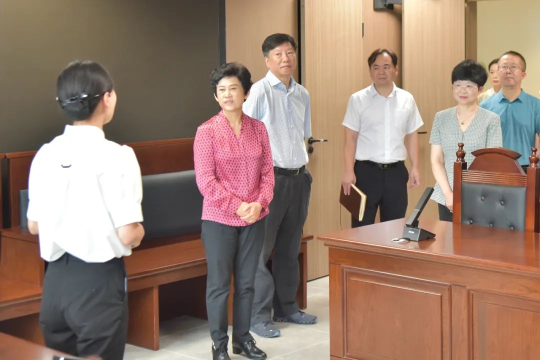 在厅指挥中心,杨永英现场观看了视频指挥系统对部分监狱、戒毒所和司法所进行的工作调度,实地察看了行政复议应诉事务中心、行政复议听证室、法治融媒体中心等场所,并详细了解司法厅行政复议、普法宣传及立法工作情况。