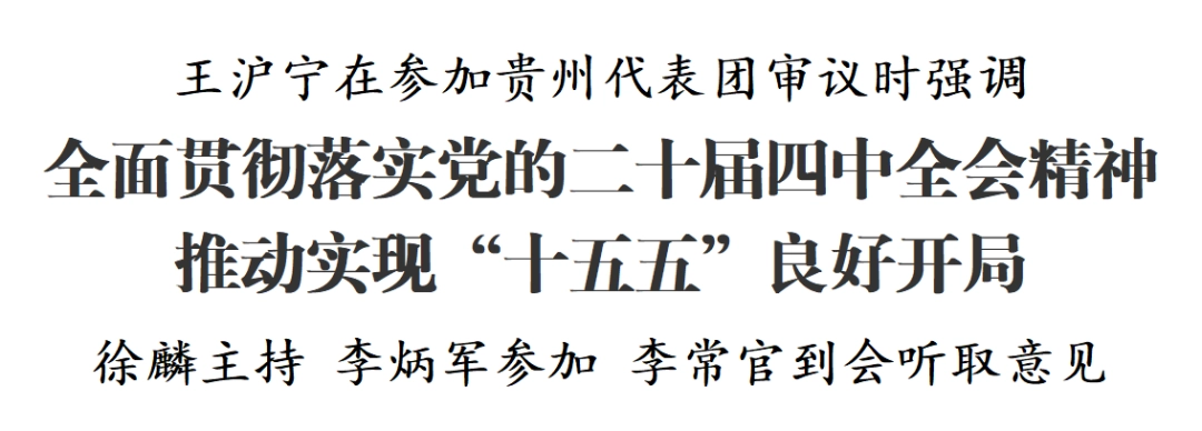 李利、欧阳黔森、洪湖鹏等代表积极发言。王沪宁认真听取发言,并同代表们深入交流。王沪宁说,李强总理所作的政府工作报告,全面贯彻习近平新时代中国特色社会主义思想,落实党的二十大和二十届历次全会精神,体现党中央关于“十五五”时期工作的总体部署。完全赞成这个报告。