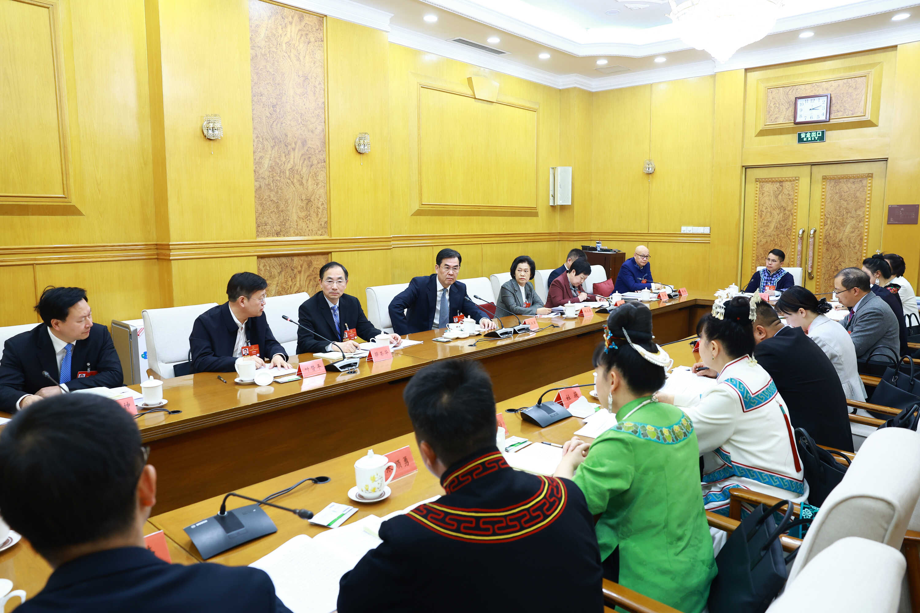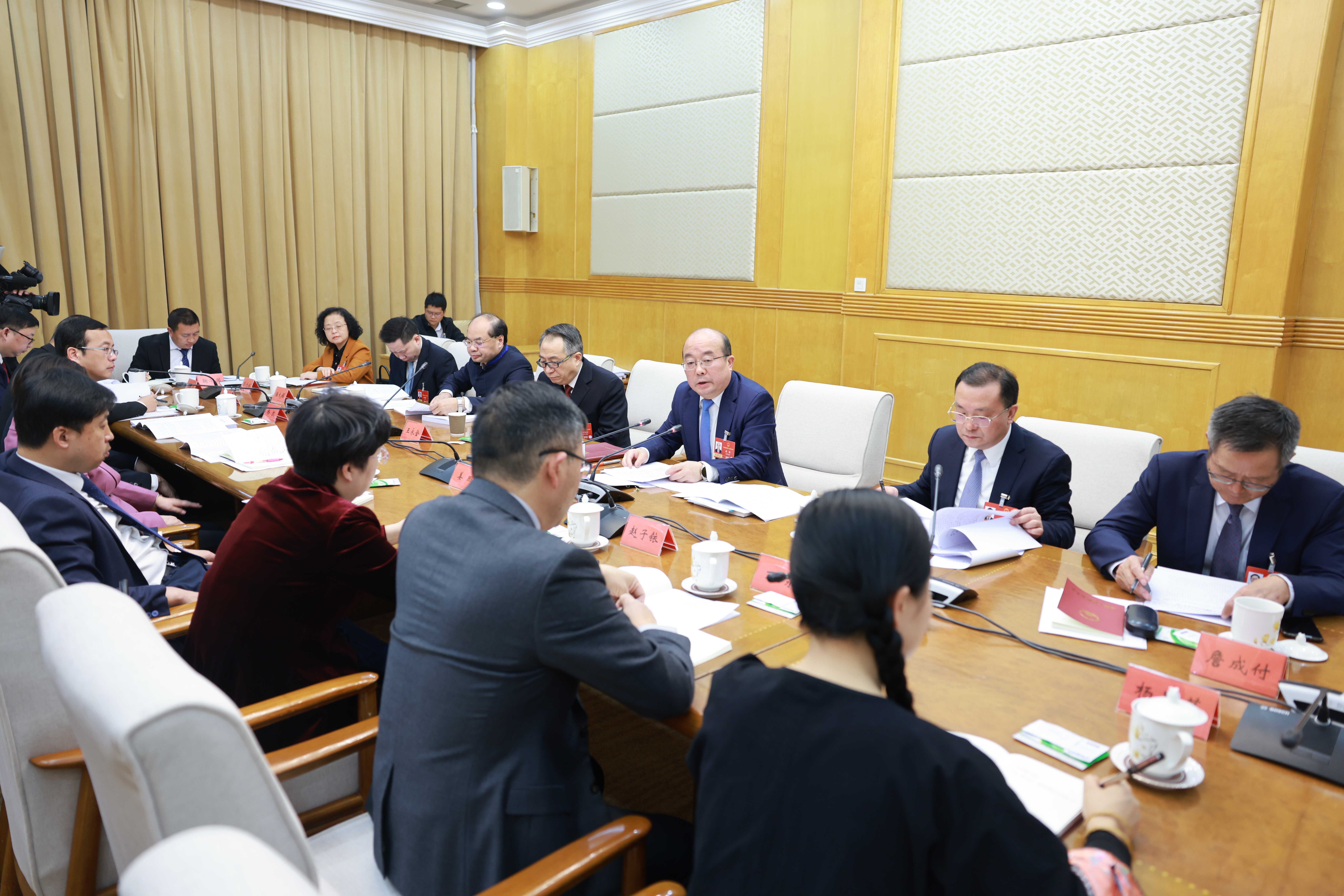3月8日下午,十四届全国人大四次会议贵州代表团举行会议,审议民族团结进步促进法草案。全国人大代表、省委书记、省人大常委会主任徐麟,全国人大代表、省委副书记、省长李炳军,全国人大代表、十四届全国人大常委会委员、全国人大常委会法工委主任沈春耀参加审议。