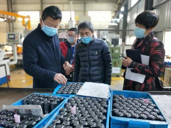 县人大常委会主任张江华(左一)到企业指导疫情防控和复工复产工作