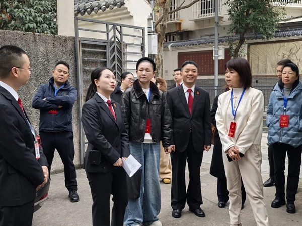 随后,视察组一行到盐务街街道办事处召开座谈会。会议集中学习了习近平总书记在庆祝全国人民代表大会成立70周年大会上的重要讲话精神和《深刻领悟习近平法治思想的法理内涵和原创性贡献》重要文章精神。区法院围绕“府院联动推进执行质效”主题,全面介绍了2025年全院受理执行案件数,办结总量及办结率、执行到位金额、到位率等执行工作情况。参会代表结合视察情况,就深化网格化协作、加强失信惩戒、改善基础保障等进行交流,提出意见建议。胡芊副主任充分肯定区法院执行成效,强调要持续完善“党委领导、政府支持、法院主办、多方联动”格局,推动府院联动常态化、制度化。