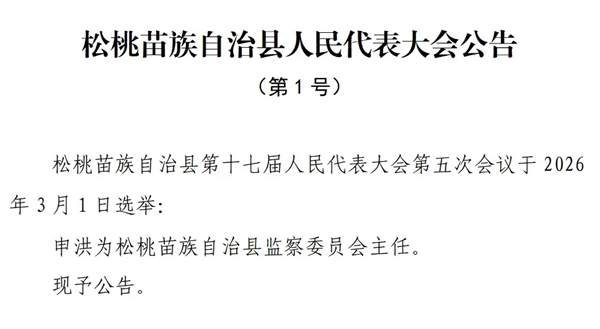 松桃苗族自治县人民代表大会公告(第1号)