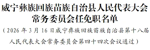 金 超的威宁彝族回族苗族自治县人民代表大会常务委员会六桥街道工作委员会主任职务;
