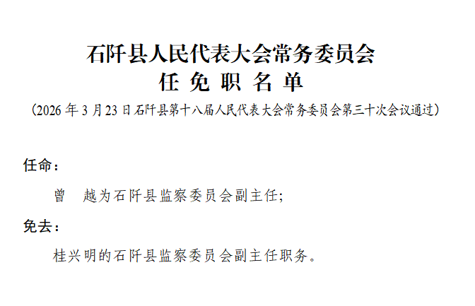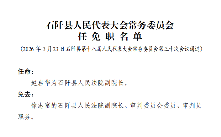 石阡县人民代表大会常务委员会任免职名单