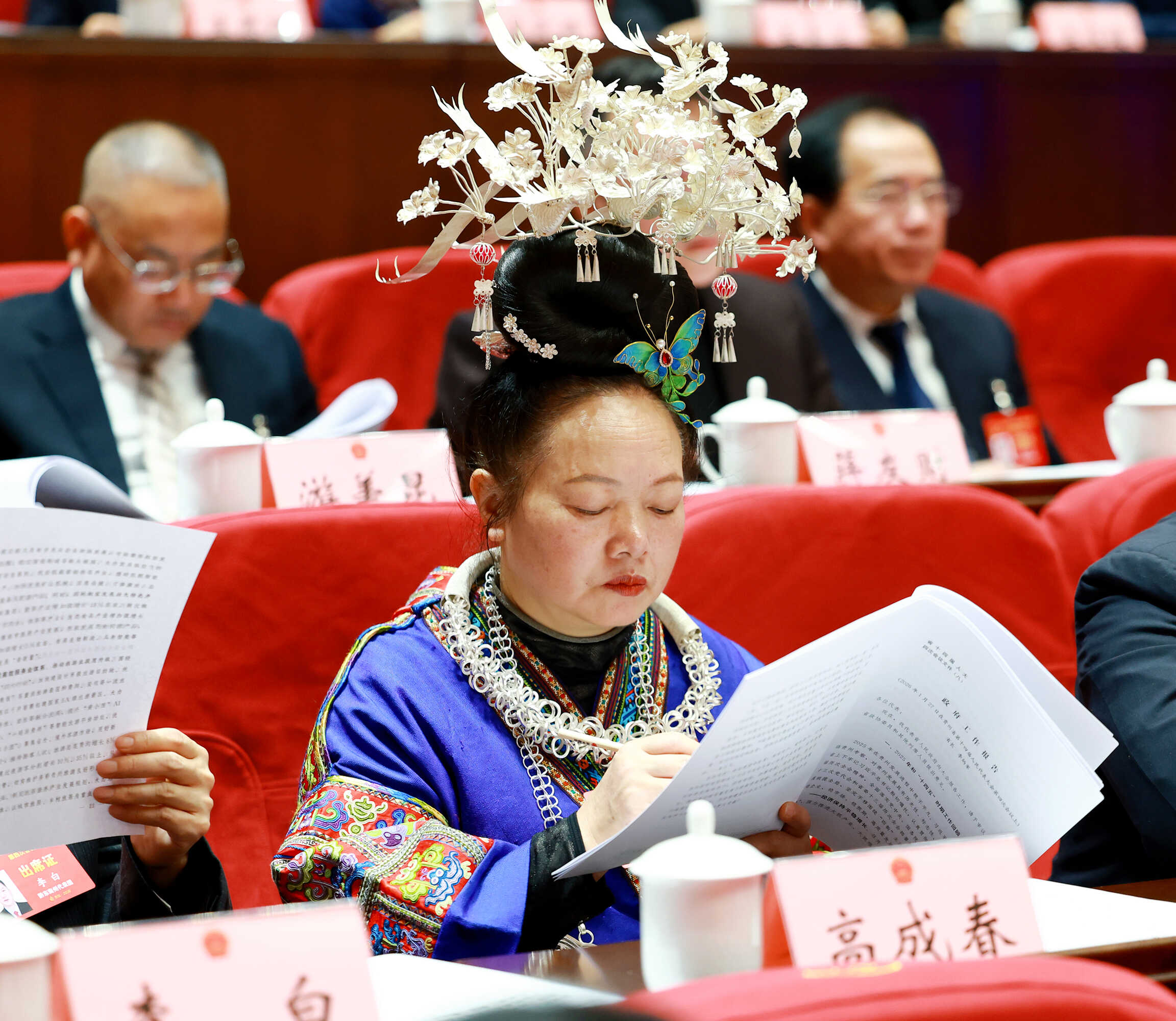 省十四届人大四次会议第一次全体会议(开幕会)共有5项议程:一是省长李炳军作政府工作报告;二是审查贵州省国民经济和社会发展第十五个五年规划纲要草案;三是审查贵州省2025年国民经济和社会发展计划执行情况与2026年国民经济和社会发展计划草案的报告;四是审查贵州省2025年预算执行情况和2026年预算草案的报告;五是贵州省人大常委会副主任郭瑞民作关于贵州省实施《中华人民共和国全国人民代表大会和地方各级人民代表大会代表法》办法(修正草案)的说明。(摄影:人大论坛全媒体记者 王敏)