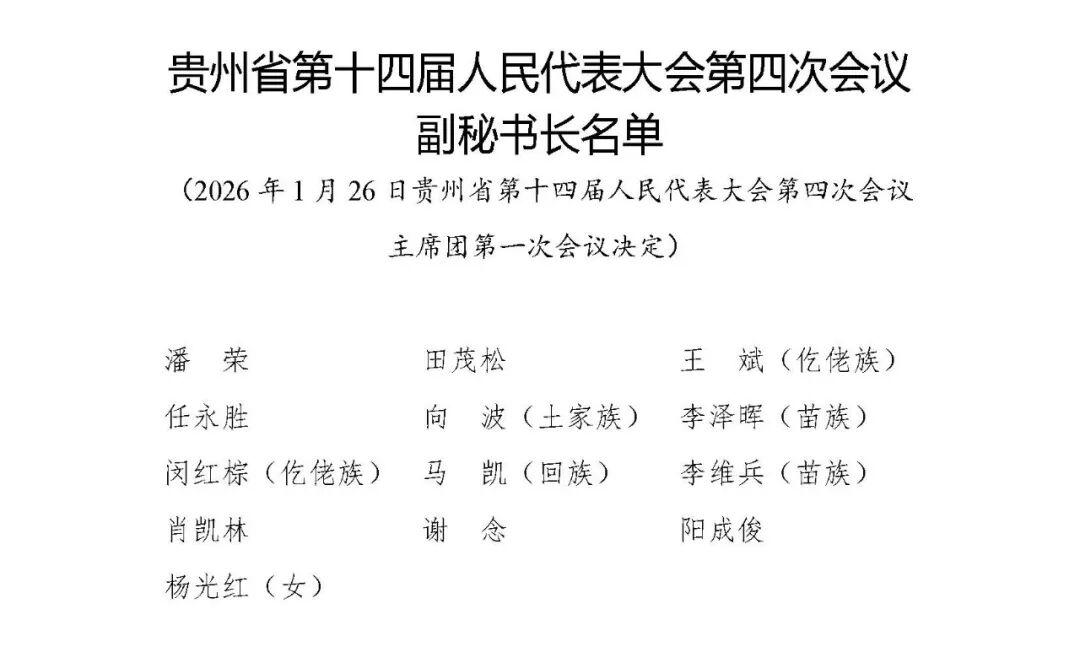 贵州省第十四届人民代表大会第四次会议副秘书长名单