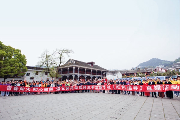 2021年3月28日,遵义师范学院师生在遵义会议会址前开展活动,重温党的辉煌历程,接受革命传统教育。贵州省委宣传部供图