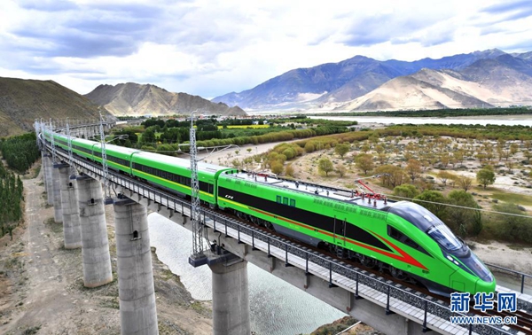这是6月16日拍摄的行驶在拉林铁路上的复兴号列车。新华社记者 觉果 摄