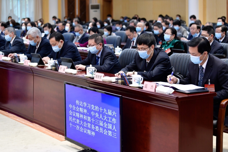省委书记、省人大常委会主任谌贻琴强调,要坚持将学习贯彻中央人大工作会议精神与学习贯彻十九届六中全会精神贯通起来,与学习贯彻习近平总书记视察贵州重要讲话精神以及栗战书委员长在贵州考察期间的指示要求结合起来,牢牢把握全过程人民民主的本质要求,全面贯彻新时代人大工作“六个必须坚持”的重大原则,不断推动我省人大工作高质量发展。
